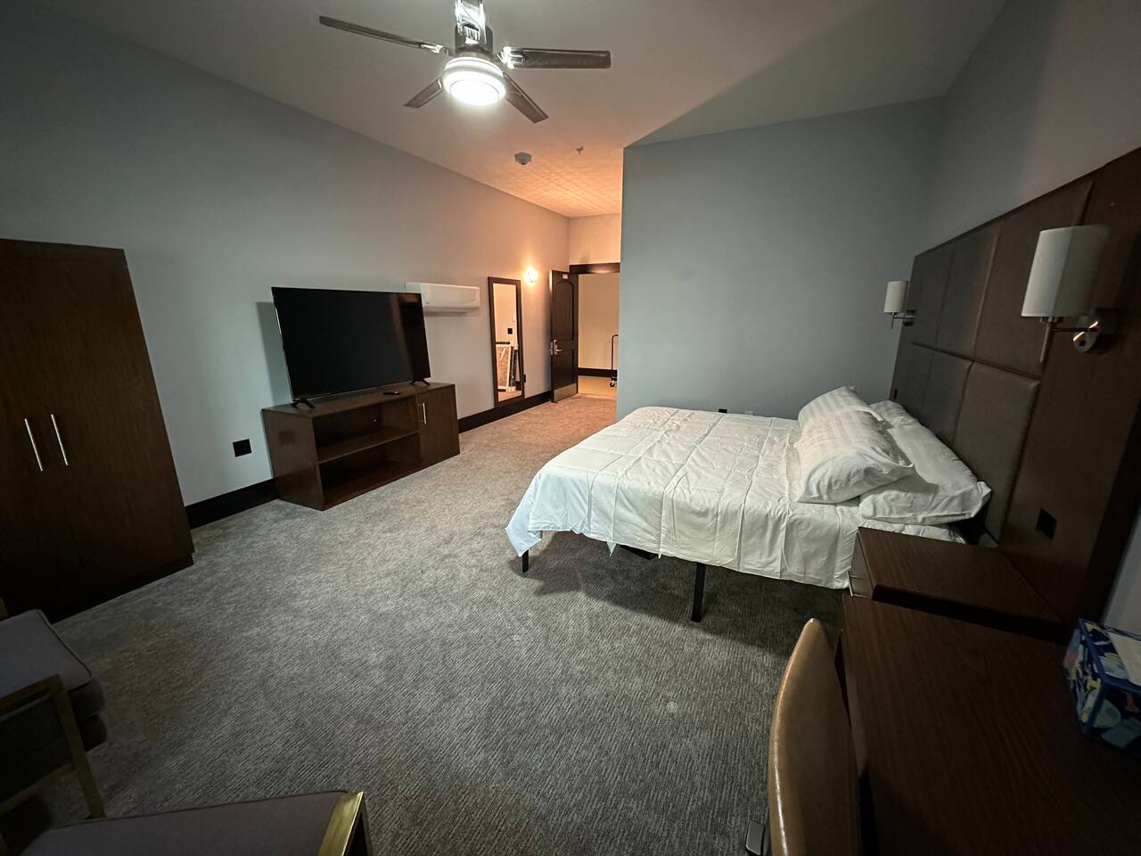 Welcome to our spacious and inviting hotel room, the perfect oasis for your stay. This well-appointed accommodation features two luxurious king-sized beds, ensuring a restful night’s sleep for you and your fellow travelers. A 65” flat-screen television takes center stage, offering a wide range of entertainment options to unwind after a day of adventures. Stay connected effortlessly with our high-speed WiFi, perfect for both work and leisure. For climate control, a remote-controllable thermostat allows you to tailor the room’s temperature to your preference, ensuring your comfort year-round. A soothing ceiling fan adds an extra layer of climate control, providing a gentle breeze on warm days. If business is on your agenda, our well-equipped room boasts a dedicated work area with a desk, making it easy to stay productive. And when you’re ready to relax, a cozy sitting area beckons for moments of tranquility or a chance to sit back and read a book. Our hotel room offers a harmonious blend of comfort, convenience, and sophistication, promising a memorable stay for all our guests.